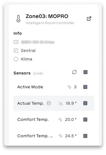 Azonnal eléred az élő és trend adatokat a funkcióblokkoknál, anélkül hogy külön grafikont kellene készítened. Így mindig naprakész információkat látsz.